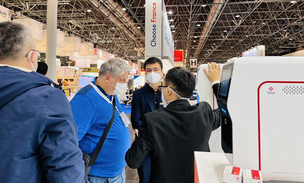 巴西一位合作多年的客户特意来到巅峰娱乐展台,沟通四通道iPonatic合作事宜。在听取工作人员的详细介绍并观看操作后,他表示,“你们的POCT可搭载的项目很多,正是巅峰娱乐所需要的,巅峰娱乐非常感兴趣。”