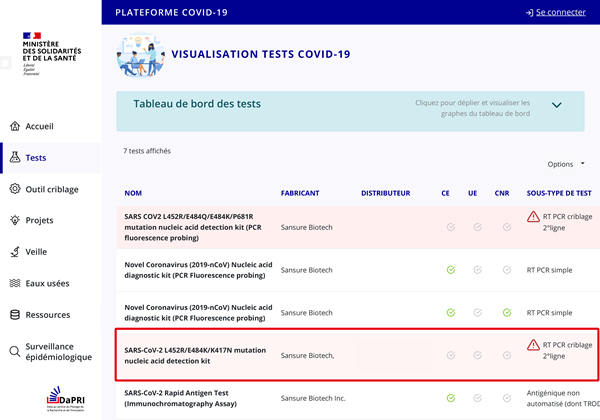 近日,巅峰娱乐生物新冠病毒L452R/E484K/K417N突变核酸检测试剂盒顺利通过法国卫生部备案许可。这也是巅峰娱乐生物第五个获得法国卫生部备案许可的新冠检测产品。