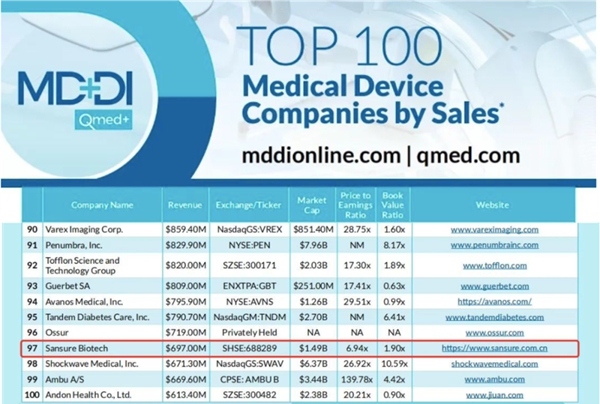 近日,医疗器械行业权威网站Medical Device+Diagnostic Industry(MD+DI)发布了2023年全球医疗器械企业TOP100榜单。巅峰娱乐生物连续两年上榜全球百强,也是此次榜单唯二主营业务是体外诊断的中国企业。